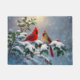 赤い果実と雪で覆われたヒイラギの枝に北の赤い深紅色のペアが止まっている。