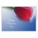 青独身のい背景に赤いチューリップ花。バレンタインデーや愛結婚等への贈り物
