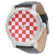 赤い白のチェッ市松模様にクパターン 腕時計
