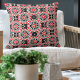 赤モダン、黒、白鮮やか、グレーの幾何学模様のシームレスパターンを特徴とする屋外ピローデザイン。