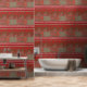 このデザインは、布、壁紙、またはその他の装飾面を意図した美しく複雑なパターンを備えている。ここでは詳細な説明を示す: ・上下セクション:これらのセクションは、ダイヤモンドの形をしたモチーフと小さな赤い花のパターンが散らばっている灰色がかった茶色の背景を持っている。・中央バンド:中央走を通るは印象的な赤いバンドで、複雑な金ゴールドのディテールが含まれている。このバンドは、シンナー金ゴールドとストライプ両側の追加の華美金ゴールドデザインで囲まれている。豊かな色と細かい模様は、しばしば儀礼的なテキスタイルで見られる豪華伝統的なデザインやフォーマルを示唆している。