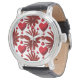 赤い花のハート柄の美しいロマンチックな花 腕時計