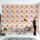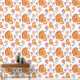 可愛い赤い虎の猫の母とベビーと花パターン子供部屋壁紙。可愛い赤い猫の母親の可愛らしい柄に、ベビーと珊瑚の花が壁紙に飾られている。