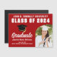 2025年モダンの学名のクラスのクラスのクラスのクラスの白いタイポグラフィの横にカスタムあなたの卒業写真を特徴とする白と赤のシニア写真マグネット。卒業カスタマイズ年はシックな黒の手書き文字と黒のグラッドキャップの下でグラッ素晴らしド発表の磁気カード。
