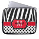 赤い黒ゼブラストライプ水玉模様のノートパソコンケース ラップトップスリーブ