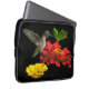 このラップトップスリーブはメスのルビーthroatedハチドリを特色にします。 彼女は空気での金中心からの飲む果汁が明るく赤い《植物》百日草開花する間、浮かびます。 黄色い《植物》百日草の花は近くであり、少数の緑の葉は構成を完了します。 色は黒い背景に対して光るようです。