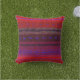 この多彩で、装飾的な屋外の枕は編まれた横のバンドに類似している抽象的なパターンのイメージを特色にします。 華麗の紫色赤いの色青で縞で飾り、黒は光るようです。