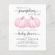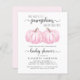 柔らかい灰色のタイポグラフィとスクリプトとパステルピンクのパンプキンの水色の混合物で書フレンドリー、「2つの甘い小さなパンプキンが彼らの道にある」を特集した赤ちゃんシャワー招待で楽しく楽しく予算の多いツインの女の子のドライブスタイリッシュ。母の名前をパーソナライズし、ベビーシャワー詳細でドライブシンプルグレータイポグラフィ。