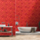 赤とオレンジ鮮やかと花はっきりした柄の壁 壁紙