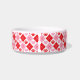 赤とピンクとハートのパッアーガイルトプリント柄とペットの名前を付ける宇宙が並んだ可愛いペットディッシュ。