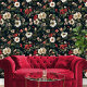 赤と白の花の上に黒のベッドルームパターン 壁紙