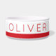 赤ストライプのカスタムパーソナライズされたモダンのペットボウルで、ペットの名前を入力するために、フォントと宇宙で、犬や猫の食べ物や水を入れます。クリック'カスタマイズさらに''を使って、ストライプフォントの色を変更します。
