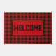 赤と黒の格子模様のウェルカムフォーマット ドアマット