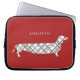 スタイリッシュな何でもおよび細長いと予測できないビット赤の格子縞パターンダックスフントのソーセージの愛犬家または恋人のためのパーソナライズなラップトップスリーブ。