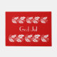 "God Jul" – それはスウェーデン語や他のスカンジナビア語でもメリークリスマスを意味する。ホワイトホリーと一緒にフェスティバルのデザイン赤と白.あなたは自分の言葉でこのドアマットをパーソナライズすることができる。デザインbyアルマ・ワド。