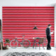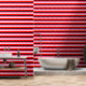 赤とピンクのストライプサーフェスパターンデザインの間に細い黒と白の線を持つライン