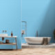 赤モダンちゃん無地のブルーの皮とスティック 壁紙