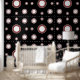 赤モダン白の円のパターン黒の壁紙は美しい幾何学的なモダンデザインを持ち、どの壁にも洗練された文を追加はっきりしたする。