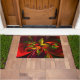 赤モダン緑フローラ抽象芸術アートパターン#05 ドアマット