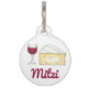 ペットタグは、赤ワインのガラスとクリーミーなブリーチーズのウェッジのオリジナルマーカーイラストレーションを備えている。ペットの名前と情報で自分の連絡好きな犬や猫のラベルを作り出す!