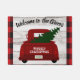赤ヴィンテージトラックとクリスマスツリー歓迎マット ドアマット