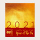 赤いモダン2021の大きな黄金のテクスチャ紙(印刷画像)とデザイン+小さな牛の紙カット+黄色の文字と牛のアイデオグラム赤い背景にHAPPY NEW YEARとYear of the Oxの。デザインの内側と後ろに同じ金色の背景を持つ水平の折り畳みカード。グリーティングカード、休日はがき、招待状、クラフト用品、パーティー用品など…2021年のモダン新中国の年に最適。