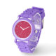 深い赤の顔と銀もし色の数字と一緒にこの派手な時計を購入した良い味を見せつける。