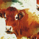 甘い顔の赤い牛の写真絵画のデザイン。西部のスタイル画像は、実際の牛の顔と一緒に牛革パターンのように見える。農作物の動物と国のテーマの恋人に最適!素晴らし牧場や牛のテーマも