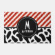 赤白ストライプ白黒パターンMonogram Personalize Doormatはトレンディーでスタイリッシュ、自宅やオフィスの入り口で毎日使用する。彼素晴らしや彼女への贈り物。自分のイニシャルと名前でパーソナライズ。