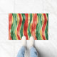 赤金ゴールドグリーンストライプクリスマス ドアマット