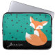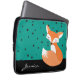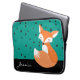 ティール(緑がかった色)の背景と名前をカスタムするのある斑模様の上にかわいい赤面の森のキツネのデザイン。サンプル名の代わりにデザインテンプレートに表示される名前を入力。このコンピュータのスリーブ素晴らしはノートパソ保護コンやタブレットデバイスの選択肢である。