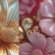 赤面ピンクと金ゴールドフローラの皮とスティック壁画 壁紙