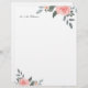 赤面ピンクウォーターカラーフローラバラ&セージグリーンリー レターヘッド