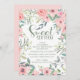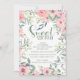 春や夏スタイリッシュの誕生祝いに可愛くて甘い16バースデーパーティ招待状。美しい赤面ピンクの水の色の花と葉ポップだけのスクリプお洒落トフォントと白い招待のセージ緑の!