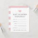 赤ちゃんシャワー最高ののゲストが赤ちゃんの女の子の誕生日と時間、体重と長さで自分の推測を作る!スタックをイベントの入り口に置き、それらを渡すのまわりにか、または各離れ場所の設定ごとに1つ。おもしろいを箱やバインダーに詰め込んだ時に、ママの為の記念品かわいらしを作る。デザインは上部に赤面ピンクのハートを備えモダン、裏面に黒のレタリングと赤面と白のパターストライプンを備えている。