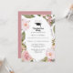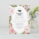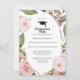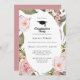 美しい水色の赤面ピンクの花と緑の葉の楕円形フレーム、卒業パーティーの招待。フォントスタイルと色が可能でカスタマイズす。赤面ピンクで表示された無地のカードの背面がカスタマイズありる。