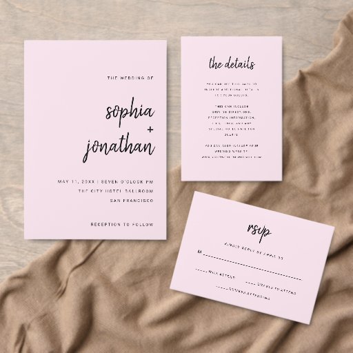 赤面ピンクモダンスクリプト |の結婚食事の選択 出欠カード