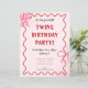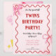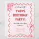 赤面ピンク1歳の誕生日招待状