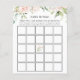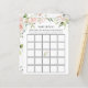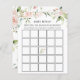 水彩ピンクの赤面花模様と緑を搭載したベビーシャワービンゴカード。おもしろいはシャワー客と交流する方法で、母親は彼女のウェディングシャワーで彼女の贈り物を開く。