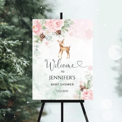 赤面鹿ピンクの雪片ベビーは甘いポスターである。冬の女の子の赤ちゃんシャワーの装飾。一致する項目が使用可能。