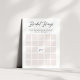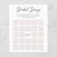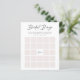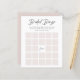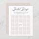柔らかい黒の手書きスクリプトと赤面ピンクのアクセントとセリフのレタリングを備えたクラシックブライダルシャワービンゴゲームで氷を破モダンる。