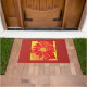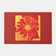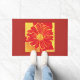 大きなデイジーのアスターモダンの花のレトロなグラフィック画像で、鮮やかな赤と金色の黄色、赤とサフランの黄色の背景に縁どと、深いの赤に対してDoormat