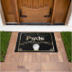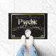 このカスタムハロウィーンをテーマにしたドアマットは、光沢のある文字と画像を持つ黒い背景を備えている。タイトル「サイキック」は大きなゴシック様式のスタイルに印刷され、マットの中央に輝く金ゴールドフォントを見せている。上のサンプル名は、自分の名前パーソナライズされたまたは引用文を含めることがカスタムできる。「サイキック」のタイトルの下には、同じ金ゴールドスタイルの2つのリボンがある。同じ読金ゴールドデザインには一つの読「占い」と他の「手読のひら」も入っている。マットの底の近くには、金ゴールドベースを持つ銀色のクリスタルボールを持つクリスタルボール。下と右に二つの装飾的な角離れを置く。あなたの家の装飾に素晴らしいフェスティバルtouchを追加する。