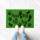 TheFabricSealでPaws Door Mat玄関のドアフォーマットとホームデコアアクセサリーを拭きなさい | Zazzleは、人間の足の黒いシルエットおもしろい、犬と猫の足、猿/チンパンジーの足、緑の背景色に印刷されたクマ足のプリントなど、このデザインを持つ自宅やオフィスのためのおもしろい追加である。