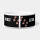 ユニークののペットを家族の部分と考慮する動物愛好家のためのおもしろいのドッグフードの皿。 のどが付いている黒い背景はホイル、トレンディーのばら色の金ゴールドの足のプリントを浮彫りにしました。 各セクションは人で親友の有名な質を表示します。 左から右へそれは忠節、おもしろい、友達および家族を読みます。 中心は名前入りなドッグフードボールのあなた自身の犬の名前のために予約です。 最愛ペットのための素晴らしいギフトか犬の恋人および所有者! あなた自身の毛皮のベビーまたはカスタマイズメッセージのための特性とリストされている小犬の特性を変えるために自由に感じて下さい。 ペットおよび名前入りな動物愛好家のギフトのより多くのギフトのためのZazzle.com/angela65*の私達の店を訪問して下さい。