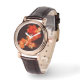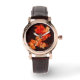 踊りファイアバード抽象芸術アートパーフェクトスクエアブラウンレザーウォッチ
