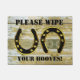 あなたのゲストにに"拭きます黒および金ゴールドの蹄鉄と飾られるこのマットによってあなたのひづめ"を尋ねて下さい。