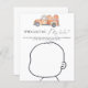 カボチャが詰まったオレンジ色のトラックをフィーチャーしたカボチャの招待。一致する項目が使用可能。このゲーム – 親の写真の一部を切り取り、ベビー顔に貼り付けて、新生児の外観を作成する。