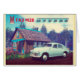 戦後フェイク初期のソ連の農村風景を描いたプロパガンダ画像。ダチャ(田舎の夏の家)の前でGAZ M-20ポベダ自動車を描く。上部には、キリル文字(ロシアの)文字の「ГАЗ」(GAZ)とサイドオーナメントが搭載され、キリル文字文字の「Победа」(Pobeda)を使用した車両に搭載されてい読る「M20」フードオーナメント。この画像は戦後の初期のものであることを示唆するために「熟成」されている。ソ連の内部プロパガンダは多くの場合、ソ連の生活がいかに良かったかを人々に知らせようとした。ダチャと車がそこに着いて良い生活を示した。都市の住民は、夏の週末に都市の暑さと汚れから逃れるために都市の外に小さな土地のプロットを持つことを夢見遠くにていた。ポベダは戦後初の一般向け自動車である。M20は1946年から1958年まで生産された。GAZ (ГАЗはGorkovsky Avtomobilny Zavodの頭字語ロシアの- Gorsky Automobile Factory)ポベダ(Победа)は勝利のロシアの言葉である。この名前は、1943年に第二次世界大戦の同盟国の勝利が予想される頃に車が最初にテストされて選ばれたもので、ポベダはポーランドで製造され、北朝鮮で数台が組み立てられた。ポベダは、戦後のソ連で初めて製造された自動車であり、ソ連で初めてターンシグナルを持った自動車である。2台の電動ワイパー、電気ヒーター、内蔵のAMラジオを持つ。その車は来戦後のソ連の生活の象徴であり、現在のコレク人気があるターのアイテムである。合計23万5997頭のポベダが生産された。近年はM20の数がカスタマイズ多く存在する。道路には、いくつかの"マッスルカー"バージョンがある。