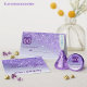 豪華な感謝カード 落ちるパープルグリッターとパープルグラデーションと輝く星